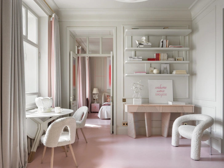 Белая квартира 40 м² с розовым полом и парижским настроением
