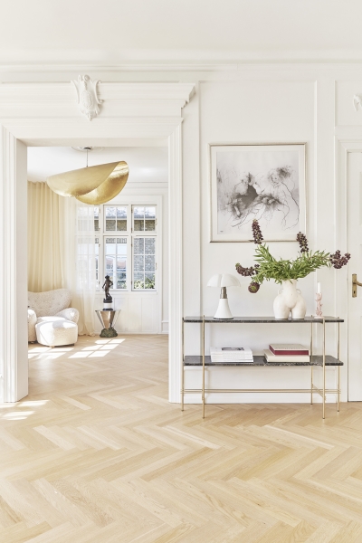 Дом 1884 года во Фредериксберге нуждался в реконструкции, и новые владельцы отнеслись к его истории с уважением. Они восстановили фасады и лепнину, заменили крышу и заполнили интерьеры дизайнерскими предметами из латуни с приятным золотистым мерцанием