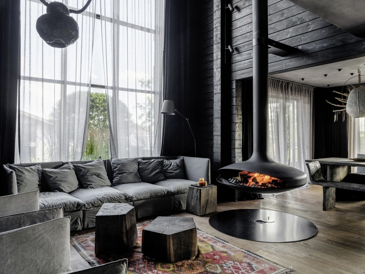 Не все предметы приживаются здесь, но все черные смотрятся безупречно. Детские кровати напоминают пещеры с потайными ящичками для хранения секретов. А вращающийся камин, словно Дух Огня, придает силы этому сказочному месту. «Соседские дети называют дом «ведьминым», а во всем поселке появился устойчивый топоним: в сторону черного дома, — говорит хозяйка. — Впрочем, ни нас, ни детей это не смущает. Когда после карантина мы выехали в «Горыныч» на ужин, младший сказал: «Хорошо, как дома!» www.nb-studio.ru