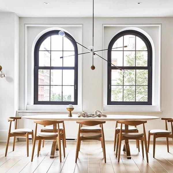 Основной плюс гостиной с двумя окнами — большое количество солнечного света, что помогает визуально расширить границы пространства и позволяет использовать любые оттенки в оформлении — от спокойных нейтральных до насыщенных плотных красок. Сами окна также являются частью интерьера: яркая рама или акцентные детали на подоконнике сделают комнату интереснее и индивидуальнее. Еще один важный элемент — это вид из окна, который можно подчеркнуть или, наоборот, скрыть с помощью декора.