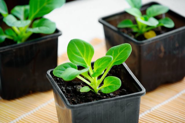 Пикировка необязательна. Можно сразу рассадить пучками по 3–5 растений в стаканчики, когда всходы подрастут до 1–2 см. Или выращивать в общей емкости до высадки группами. Когда растения достигнут 3–4 см, прищипните верхушки для кущения. Подкормки раз в две недели слабым раствором, начиная через месяц после всходов.