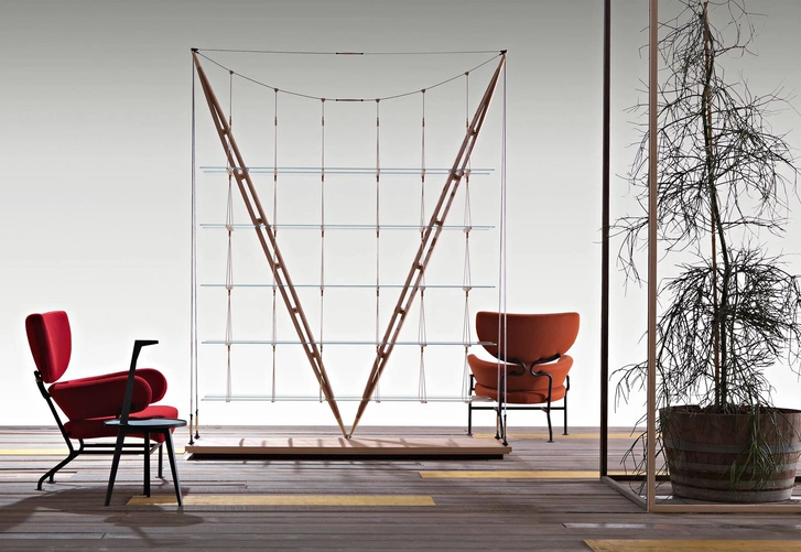 Эскиз Veliero работы Франко Альбини, 1939-1940 гг.Стеллаж Veliero в черном цвете, Cassina.Стеллаж Veliero в миланской квартире Франко Альбини на Via de Togni.