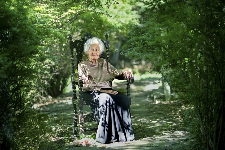 Ева Цайзель в возрасте 100 лет в саду перед своей мастерской, 2006 год.