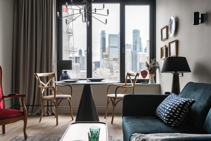 Проектировать для себя оказалось сложнее, чем для заказчиков. Хотелось и того, и другого, и третьего. Трудно было остановиться и выбрать что-то конкретное из всего многообразия вариантов. Но в итоге мне удалось договориться с собой и согласовать все моменты с супругом. Приезжая сюда, мы первым делом садимся за стол, откуда открывается завораживающий вид на Сити.