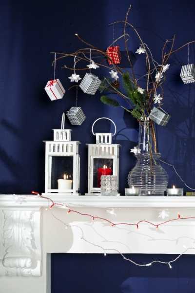 Чтобы сделать украшения на елку своими руками, достаточно обладать базовыми знаниями работы с ножницами и бумагой. Из разноцветного тонкого картона получаются симпатичные коробочки-сюрпризы — перевяжите их яркими лентами и подвесьте на елку. Эти декоративные коробочки можно использовать и для украшения рождественского венка и новогоднего стола.