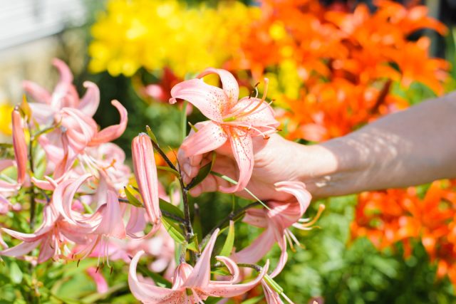 С обрезкой лилий есть свои тонкости. Цветоносы с увядшими соцветиями отрезают до первых листьев, чтобы растения не тратили силы на завязывание плодов. А вот срезать лилии под корень спешить не нужно. Надземная часть помогает луковицам запасти питательные вещества для зимовки и обильного цветения на будущий сезон.