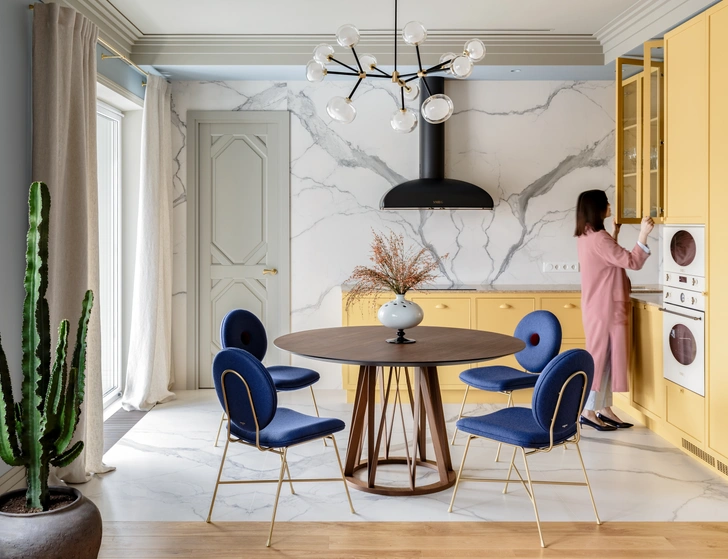 Кухня. Люстра Nabila, Tooy. Двери Ottagono, Legnoform. Панно из керамогранита Statuario, Florim. Текстиль, Christian Fischbacher.