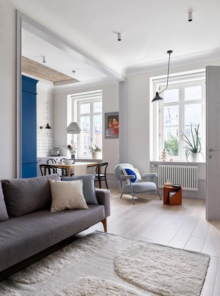 Гостиная. Диван, Softline. Ковер и подушки, H&M Home. Двери, Union. Паркет, Barlinek. Лепнина, Orac Decor. Краска, Dyrup.