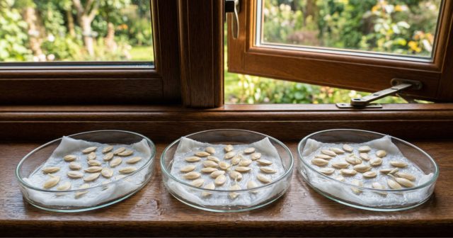 Для этого проводим замачивание семян в растворе Аминосила, а далее помещаем их во влажные ватные диски, либо на салфетки. Ватные диски или салфетки, в свою очередь, помещаем в чашки Петри или закрытые контейнеры для сохранения влаги. Важно, что семена не должны плавать в воде. В противном случае зародыш может задохнуться. Ежедневно проверяем не проклюнулись ли семена. При начале роста, аккуратно пересаживаем их в емкости с почвой.