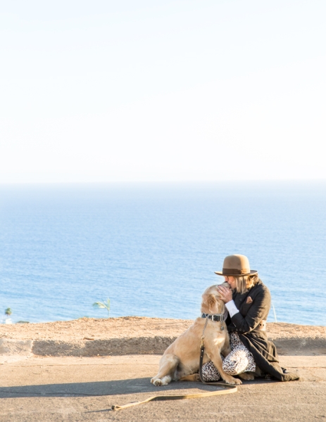 Дайан Китон со своим любимцем — золотистым рет-ривером Эмми на утесе возле дома.